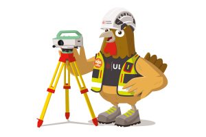 I am hen Slavi. In shape, I resemble the outline of our country, Slovenia, with the head on the left and Slovenia on the right. I use high-quality personal protective equipment to ensure the safety and health of employees. Primarily, I assist geodesists and builders from the Faculty of Civil and Geodetic Engineering at the University of Ljubljana in building a sustainable future.