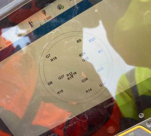 The two first points need to be a ‘known’ location so this requires the GNSS system. The GPS communicates with the satellites (see picture) to get the exact location of our point. With this it calculates the distance and angles between the two known, in order for us to apply this to all the other points on site.